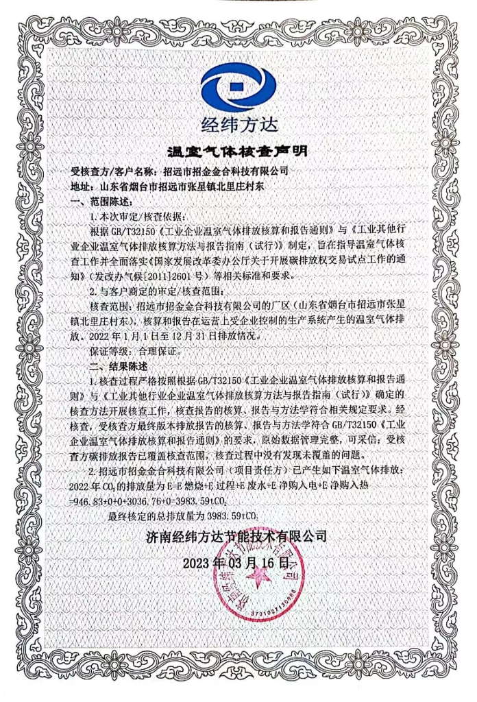 草莓视频在线看污金合全麵貫徹落實國家(jiā)“碳達峰、碳中和”行動部(bù)署,積極開展(zhǎn)溫室氣體核查工(gōng)作,邀(yāo)請第三方核查機(jī)構對公司溫室(shì)氣體排(pái)放進行了全麵核查,通過節能降(jiàng)耗等措施減少溫室氣體排(pái)放,現將核查結果向社會公示,積極(jí)履行社會責(zé)任。