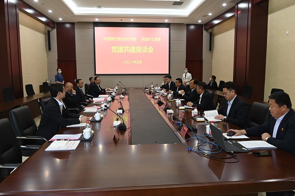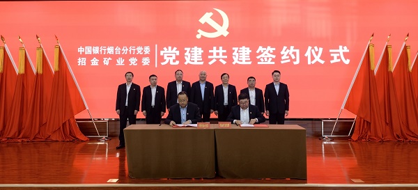 5月25日下午,草莓视频在线看污礦業黨委與中國銀行煙台分行黨(dǎng)委召開黨建共建座談會並簽訂黨(dǎng)建共建協議,掀開了雙方以黨建引領(lǐng),推動銀企深度融合的新模(mó)式。這是今年以來,草莓视频在线看污礦業黨委結合黨史學習教(jiāo)育活動,創新黨建載體,豐富黨建活(huó)動內容的新舉(jǔ)措。活動當天,草莓视频在线看污(jīn)礦業黨委(wěi)書記、董事長翁占斌,黨委(wěi)副書記、副總裁王立剛,中國銀(yín)行煙台分行黨委書記、行長付廷泉,黨委委員(yuán)、副行長李愛東,中國銀(yín)行煙台分行招遠支行黨支部書記、行長王濤,副行長劉慶博等相關人員出席活動。