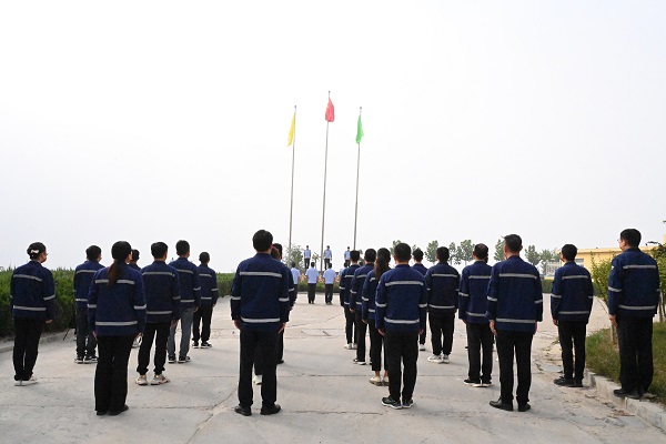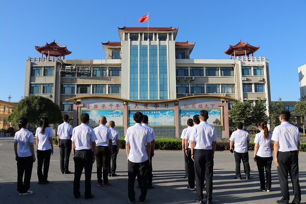 在偉(wěi)大祖國73歲生日之際(jì),豐寧金龍踐行企業文化,弘揚企業精神,舉行了升國旗活動和員工祝福活(huó)動。伴隨著嘹亮的口號聲,護旗隊伍擎著鮮豔的國旗,踏著鏗鏘有力的步伐,精神抖擻地走向升旗台。在(zài)莊嚴(yán)雄壯的國歌聲中(zhōng),鮮豔的(de)五星紅旗冉冉升起,全體職工向國(guó)旗行注目禮,表達最崇高的敬意和對祖國美好的祝願。