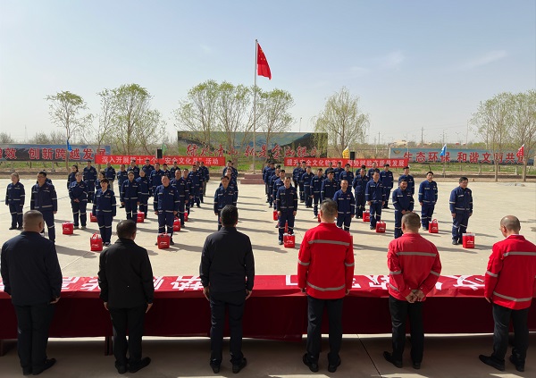 4月7日上(shàng)午,圓通礦業(yè)隆重(chóng)舉行第十六個“安全文化月”啟動儀式,通過(guò)員工代表表(biǎo)態(tài)發言、額濟納旗應急管理局領導講話、發放安全文化紀念品、宣傳條幅簽名等方式,營(yíng)造了濃(nóng)厚的安全發展氛圍,切實推動安全(quán)文化理念深入人(rén)心。企業負(fù)責人邵鵬帶領全員進行安全宣誓,要求全體幹部職工認真貫(guàn)徹活動(dòng)主題,紮實開展安全文化(huà)宣傳、安全“金點子”、文明(míng)生產整治等係列安全文化活動,強化安全理念滲透和安全行為(wéi)養成,內化思想,外化行為(wéi),時(shí)刻繃緊安全生產這根弦,為企業穩定發展提供有力保障。