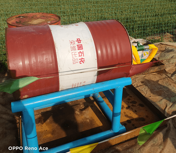 加(jiā)油桶改造。在地表(biǎo)鑽機施工過程中,各類設備加注液壓油時,常常需要兩到三(sān)名工(gōng)人(rén)合力將液壓油倒入加油桶內,再加入設備油箱,過程不僅費時費力,且易造成液壓油的浪費,也不能保證液壓油純度。機動設備部(bù)組(zǔ)織人員對油桶進行改造升級(jí),利(lì)用廢舊鑽杆加工油桶支架,將油桶(tǒng)橫放,在(zài)油桶出油口處(chù)加裝一個球(qiú)閥並連接上油管,需要加油時隻需將球閥打開即可。通過改造,既省時省力,也避免了加油時雜質進入油(yóu)箱,保證了液壓(yā)油的純度,提高了設備的運轉率,同時減(jiǎn)少了加油過程中不必要的浪費,大大節約了機台生產(chǎn)成本。