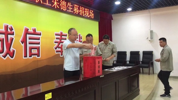 一千、八(bā)百、六百、四百……近(jìn)日,一場為幫助氰化車間(jiān)職工朱德生的愛心捐款活動在甘肅招冶會議室拉開帷幕(mù),公(gōng)司班子成員帶頭捐款,廣大職工踴躍捐助,不一會兒募捐(juān)箱(xiāng)內就塞滿了(le)沉(chén)甸(diàn)甸的愛心。一場愛心捐款,讓無數善意和愛(ài)意匯聚成汩(gǔ)汩暖流,在甘肅招冶每名員工(gōng)心中奔湧流淌。