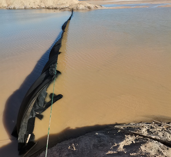 企業技術人員在經過實地調研討論後,根據銅輝(huī)礦(kuàng)業選礦(kuàng)廠尾礦(kuàng)庫(kù)運行(háng)的實際(jì)情況,製定出了(le)最經濟(jì)、最高效的解決方案:技術人員首先在尾礦庫內(nèi)拉設φ12mm的鋼絲繩130米,兩端打鑽各埋設3根φ30mm的圓鋼,每側圓鋼上端交叉焊接兩根φ80mm鋼管作為濾網拉杆保證滿足拉網強度,使用廢舊螺絲作為濾網下端配重保(bǎo)證濾(lǜ)網有效拉伸,在鋼絲繩(shéng)和兩側拉杆之間,共拉設(shè)了4層共(gòng)計520平方的回水濾網,對尾礦(kuàng)壩回水進行過濾(lǜ)。