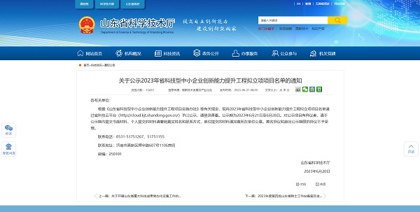 成功入選 | 山東金軟科技(jì)股(gǔ)份有限公司入圍2023年山東省科技(jì)型(xíng)中小企(qǐ)業創新能力提升工程名單