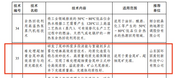 科技成果 | 國環固廢優秀充填(tián)技術入選(xuǎn)省廳綠色低碳技術成果(guǒ)目錄