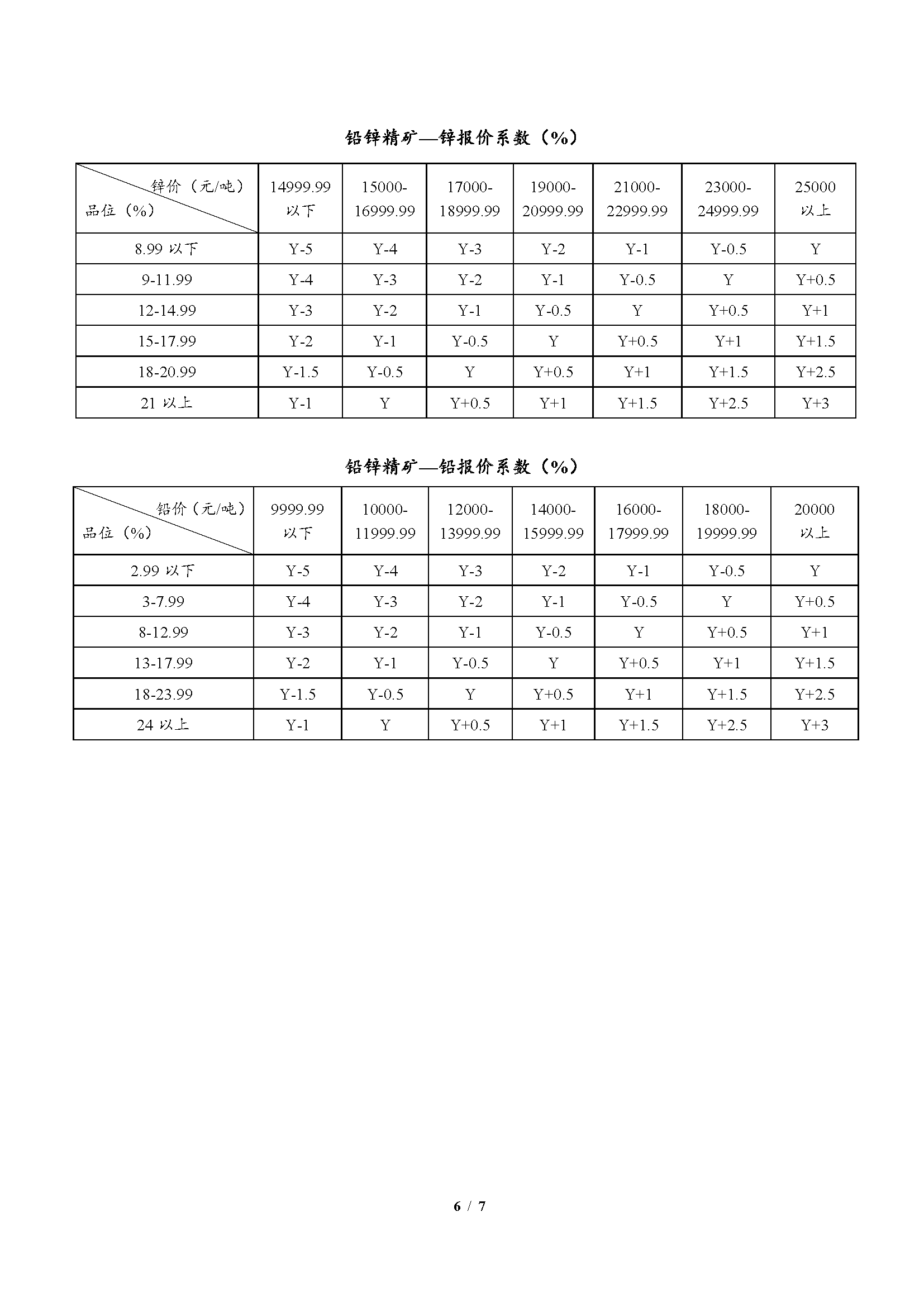 綜合單價=金品位*係數(shù)*前一日平均價格+銀品位*係數*前一日(rì)平均價格+銅品位*係數*前一日平均價格+鉛品位*係數*前一(yī)日平均價格+鋅品(pǐn)位*係數*前一日平均價格(gé)