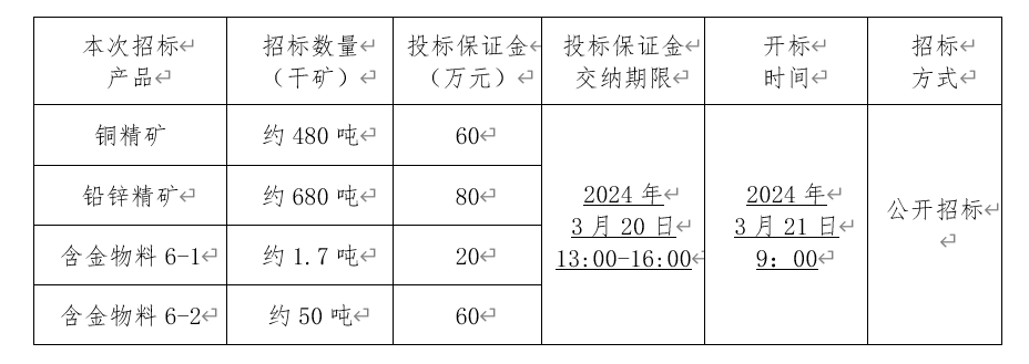 根(gēn)據貴單位的銅精礦產品質量並參考當前市(shì)場價格,我單位願意以每噸【 】元(大寫: )的價格(gé)采購貴單位(wèi)的銅精礦(幹礦)。 根據貴單位的鉛鋅精礦產品質量並(bìng)參考當前市場價格,我單(dān)位願意以每噸【 】元(大寫: )的價格采購貴(guì)單位的鉛鋅精礦(幹礦)。 根據貴(guì)單位的(de)含(hán)金物料6-1產品質(zhì)量並參考當前(qián)市場價格(gé),我單位願意以(yǐ)每噸【 】元(大寫: )的價格采購貴單位的含金物料6-1(幹礦)。 根據貴單位的含金物料6-2產品質量並參考當(dāng)前市場價格,我單位願意以每噸【 】元(yuán)(大寫: )的價格(gé)采購貴(guì)單位的含金物料6-2(幹礦(kuàng))。