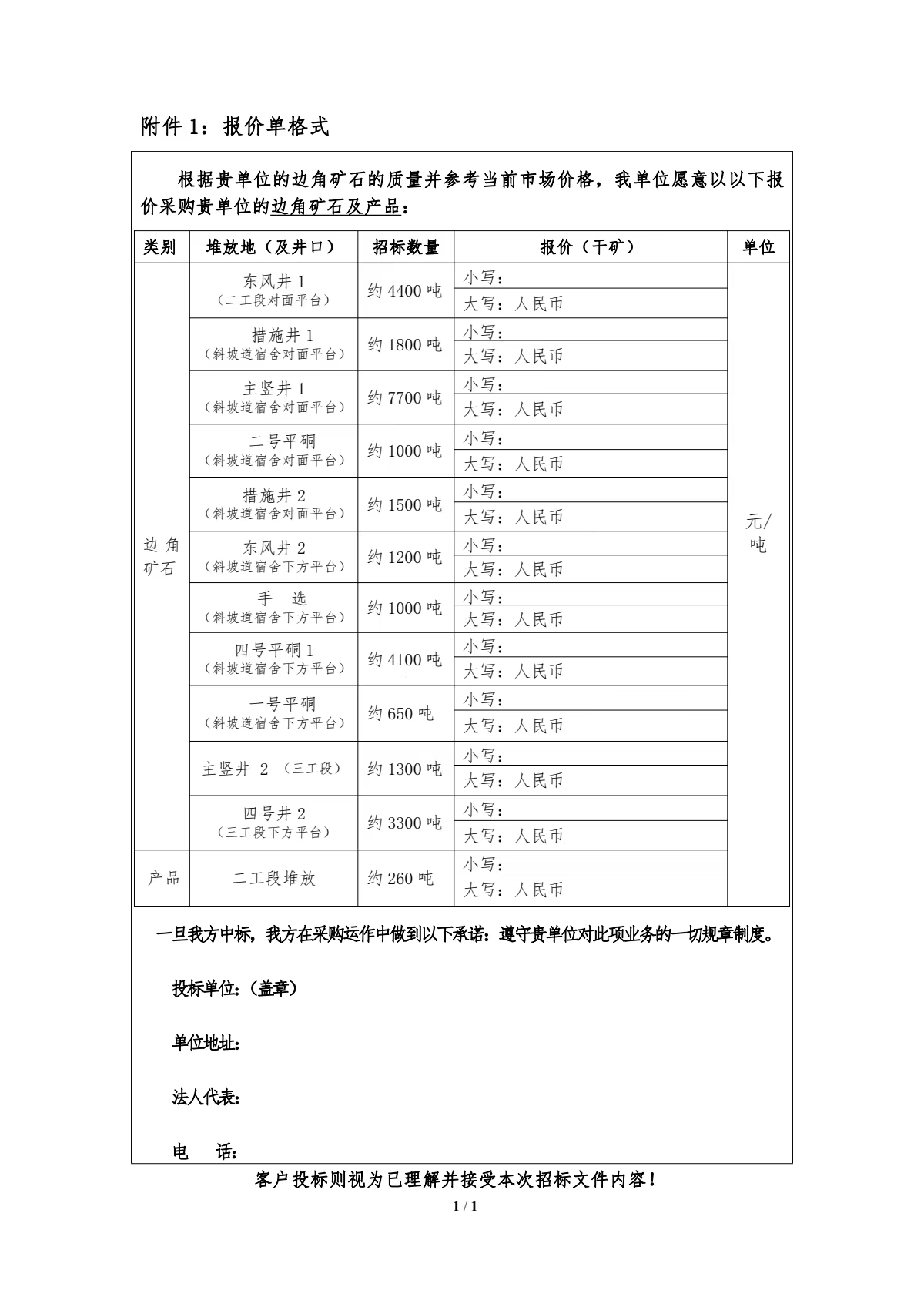 邊角礦石及產品招標文件