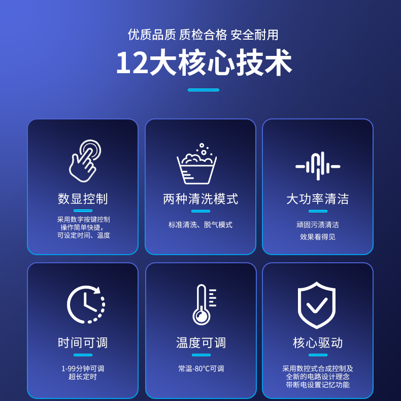四位定時可調(diào),時間控製精確(què)到秒,1-99分(fèn)鍾可調可根據清洗需求進行調節。純銅線機芯,高溫不燒機大功(gōng)率工業級震(zhèn)動芯片,空化效應強度高打釘+烤膠雙重(chóng)固(gù)定/性能穩定壽命長。SUS304不鏽鋼,一次性衝壓成型。